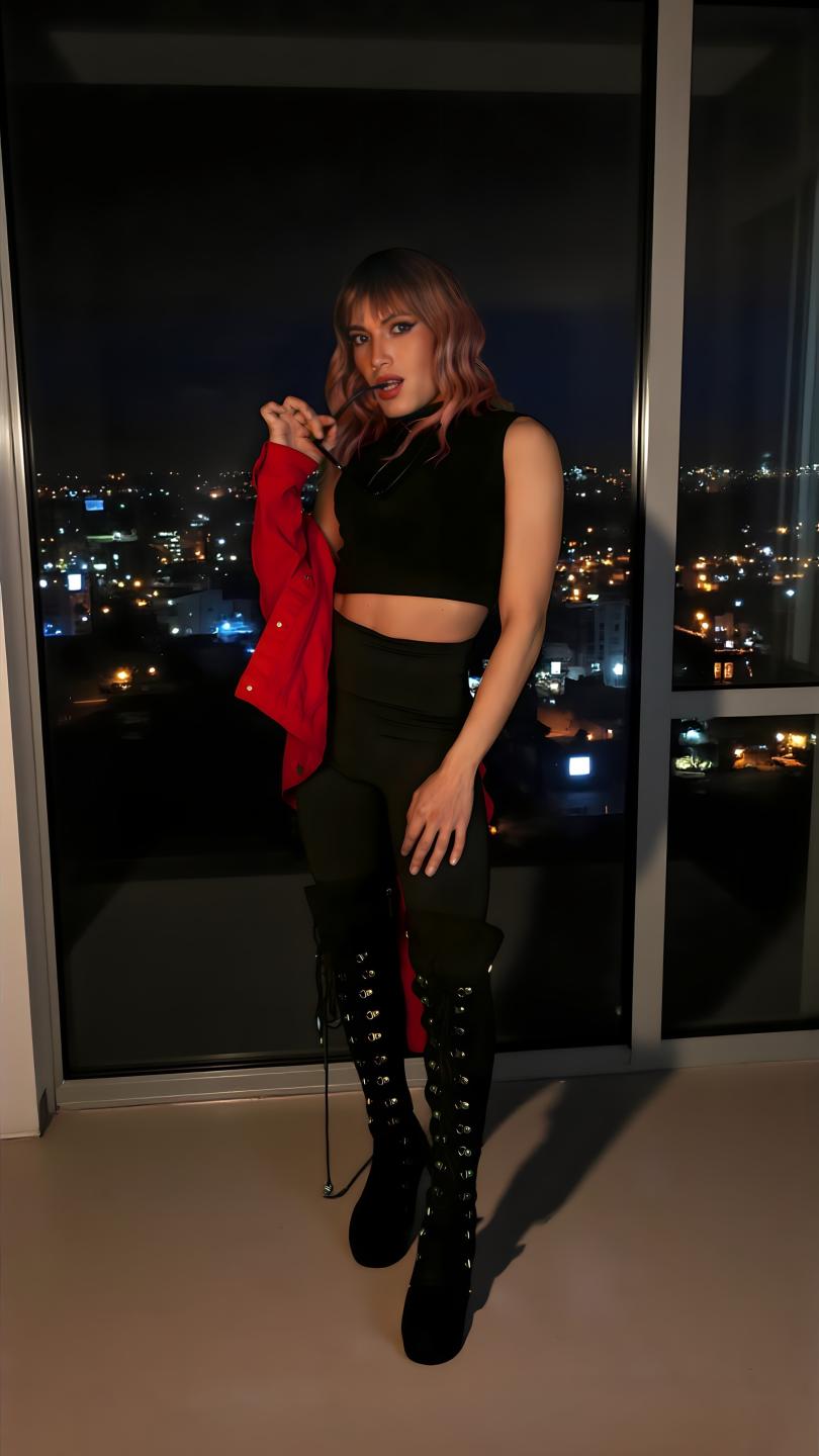 hermoso chico trans, con enorme polla jugosa y cuerpo delgado y muy sexy